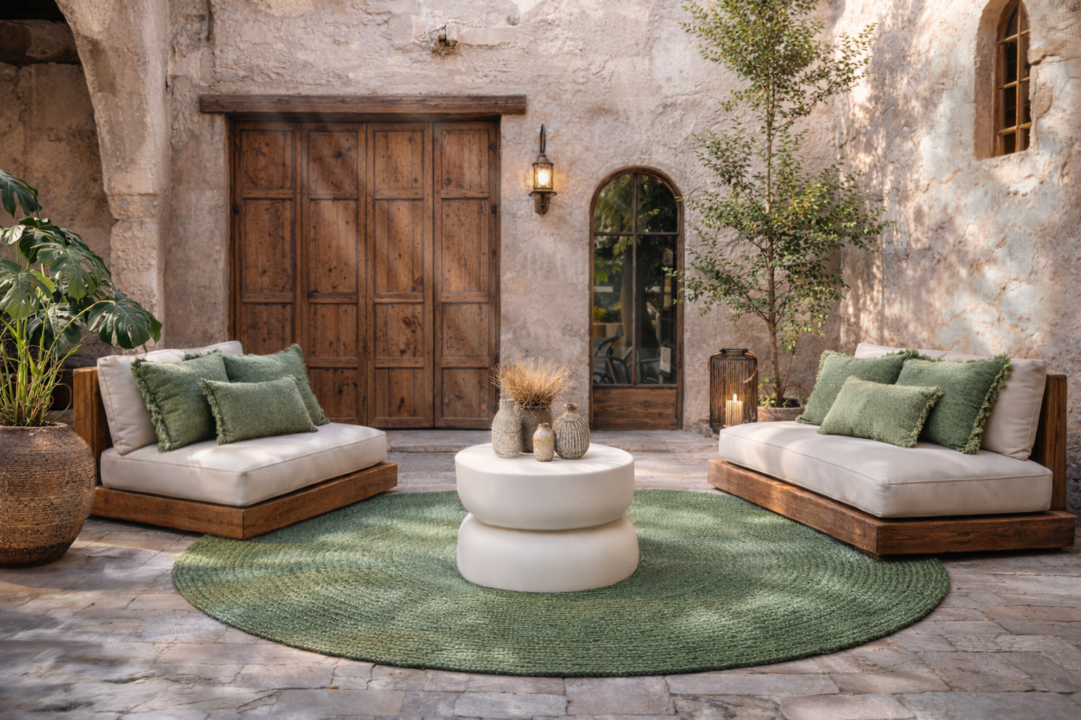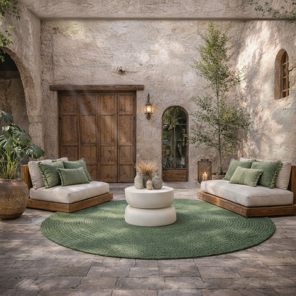 La tienes disponible en tonos naturales y en un verde musgo muy bonito que queda muy bien con plantas y madera. Es una alfombra práctica y diferente para quienes quieren un diseño moderno que aporte suavidad y buen gusto a cualquier rincón de la casa.