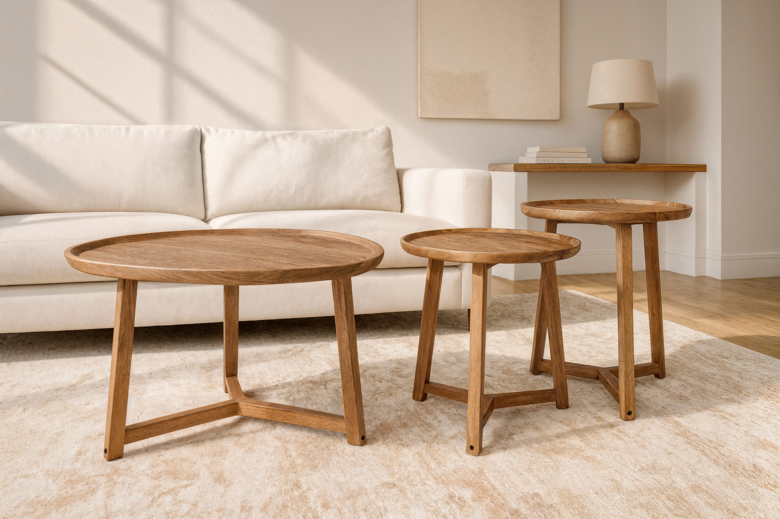 Diseñado para combinar funcionalidad y estilo, este set de 3 mesas auxiliares es el elemento ideal para completar cualquier rincón de tu hogar. Su diseño versátil y cuidado permite que se integren fácilmente en diferentes estilos de decoración, creando espacios cálidos y acogedores. Gracias a su formato en conjunto, ofrecen múltiples posibilidades de uso, mientras que su montaje sencillo te permite disfrutarlas rápidamente.